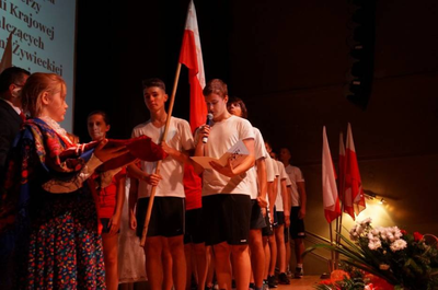 7 września 2015 r. uczniowie klasy III b brali udział w „Sztafecie z Biało-Czerwoną”. Impreza odbywała się pod patronatem Wojewody Śląskiego oraz Kuratora Oświaty. Bieg był zorganizowany w ramach uroczystości z okazji obchodów wieńczących zakończenie II wojny światowej. Celem sztafety było ożywienie pamięci o wydarzeniach wojennych, a także upamiętnienie i uczczenie bohaterów tamtego okresu. Nasza koleżanka, Emilia Kubla, trzymała okolicznościowe medale, które były wręczane przez Ślaskiego Kuratora Oświaty oraz władze miasta i powiatu zespołom biegaczy ze szkół ponadgimnazjalnych powiatu żywieckiego biegnącym spod żywieckich miejsc pamięci do Muzeum Czynu Zbrojnego Żywiecczyzny. Po oficjalnej uroczystości uczniowie klasy III wypuścili w niebo balony biało - czerwone.